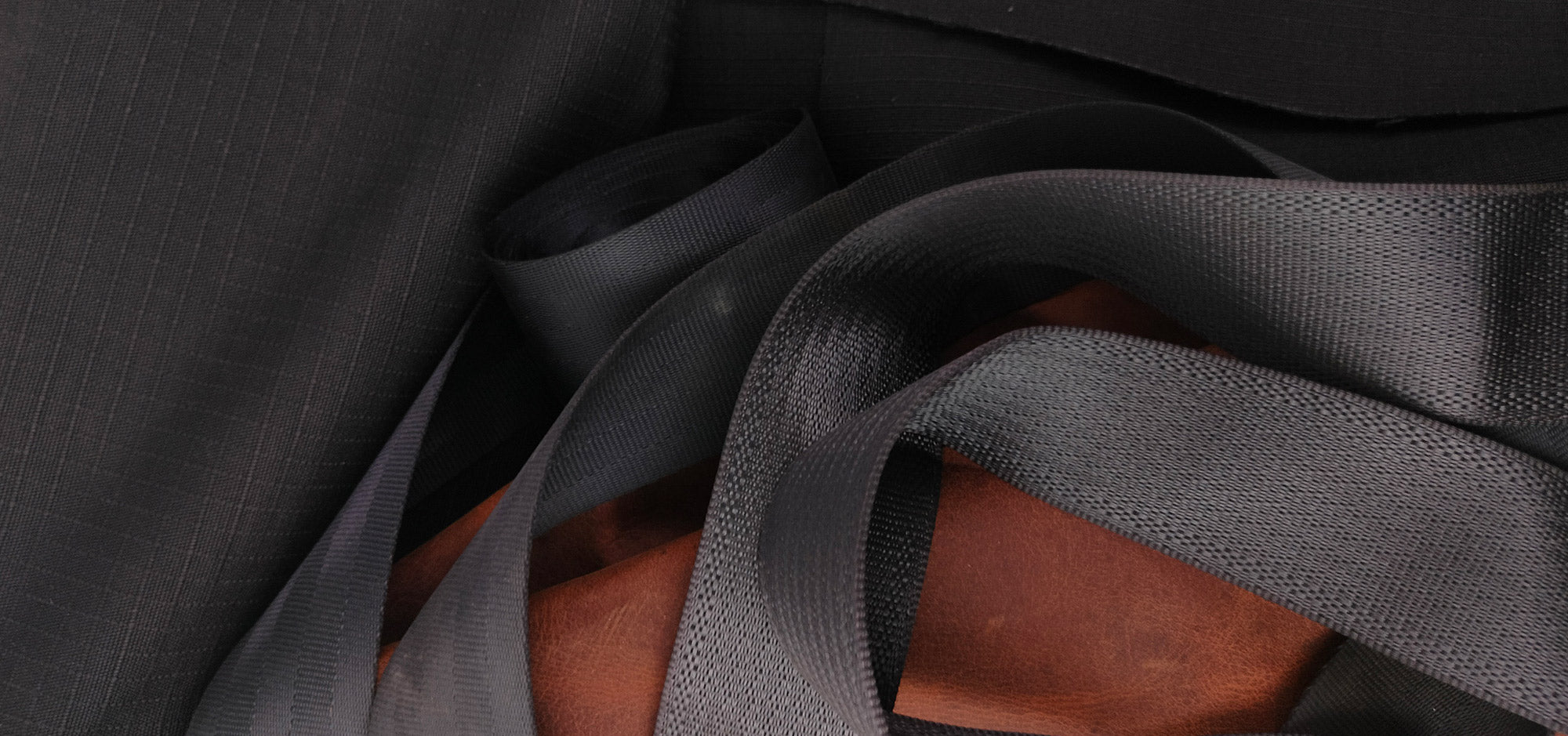 Ex-army canvas, rescued car seat belts and salvaged leather