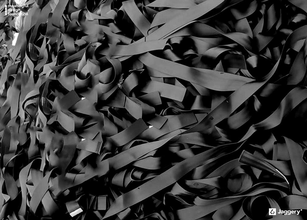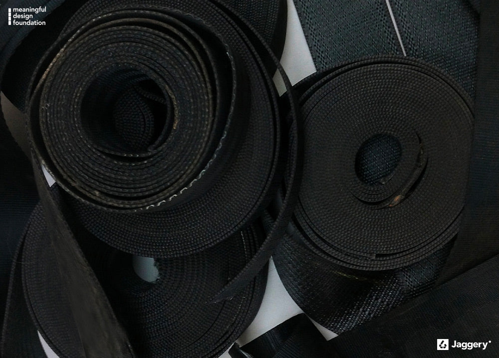 We utilize automotive waste like car seat belts, discarded army canvas and inner tyre tubes to create the Noir collection not just because of their unique textures, but because of their durability and eco-friendliness.