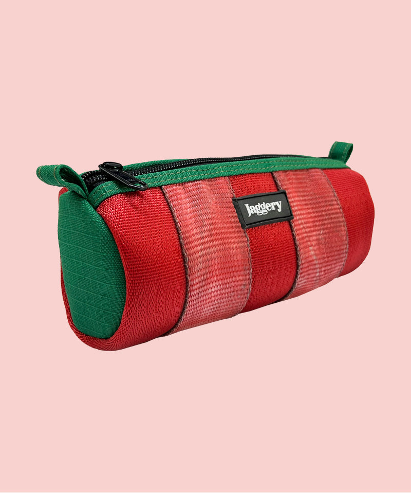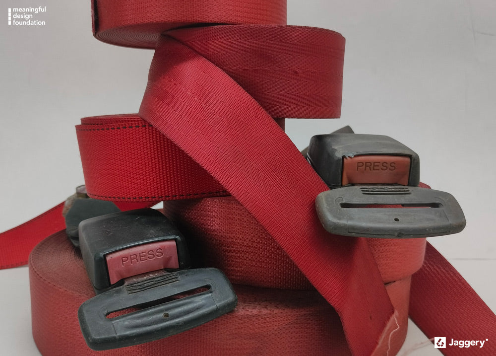 We at Jaggery repurpose these belts, which would otherwise end up in landfills, into unique and sustainable items.