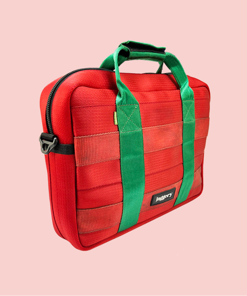 Introducing "Portuguese Christmas" - where vibrant traditions meet sustainable style. Inspired by the festive spirit and rich heritage of Portugal, this collection showcases the artistry of upcycling, merging decommissioned green and red cargo belts with black rescued seat belts to craft unique commuter bags.