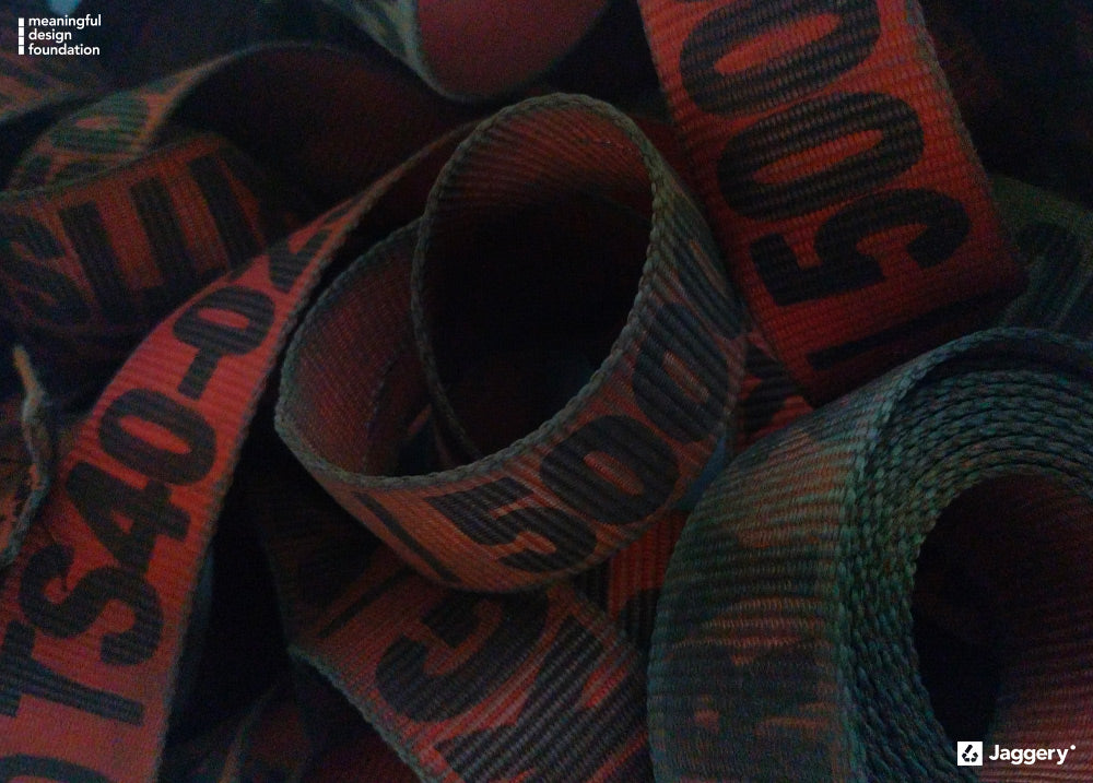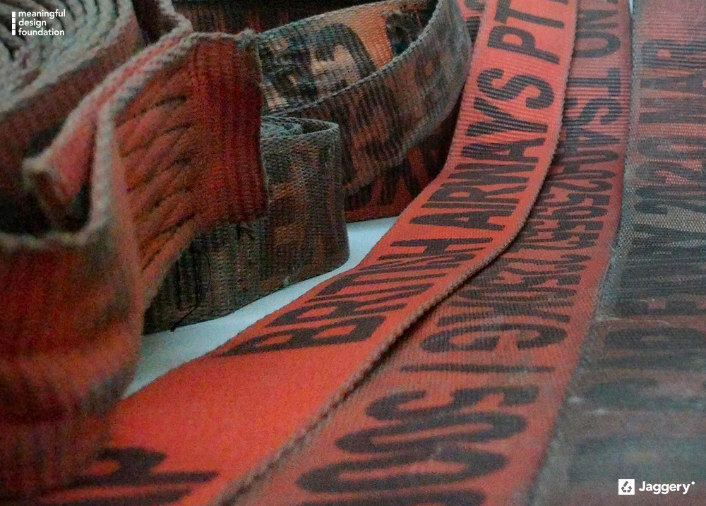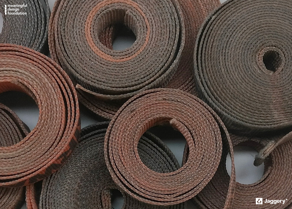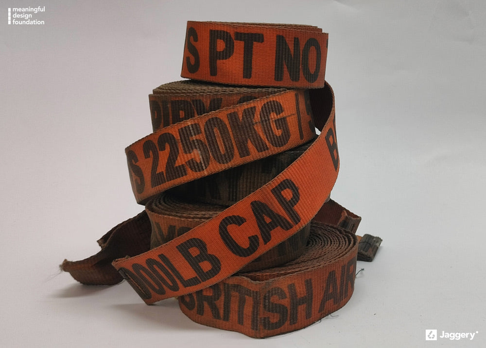 We at Jaggery repurpose these belts, which would otherwise end up in landfills, into unique and sustainable items.