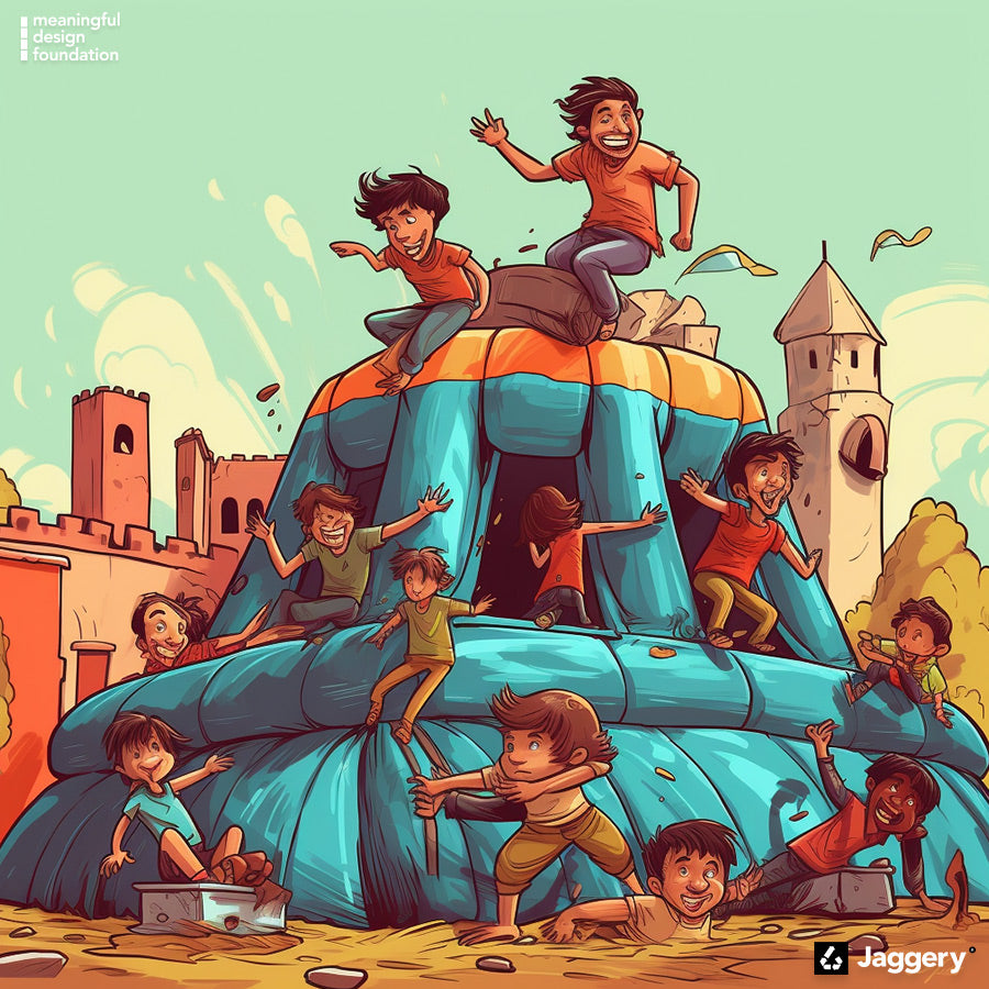 The discarded bouncy castles in India are a major environmental problem. They are often dumped in landfills, where they can release harmful chemicals into the environment. They can also contribute to climate change, as they release methane, a greenhouse gas, when they decompose.By upcycling discarded bouncy castles into bags, home decor items and camping furniture, Jaggery is able help to reduce environmental pollution and protect our planet.