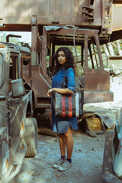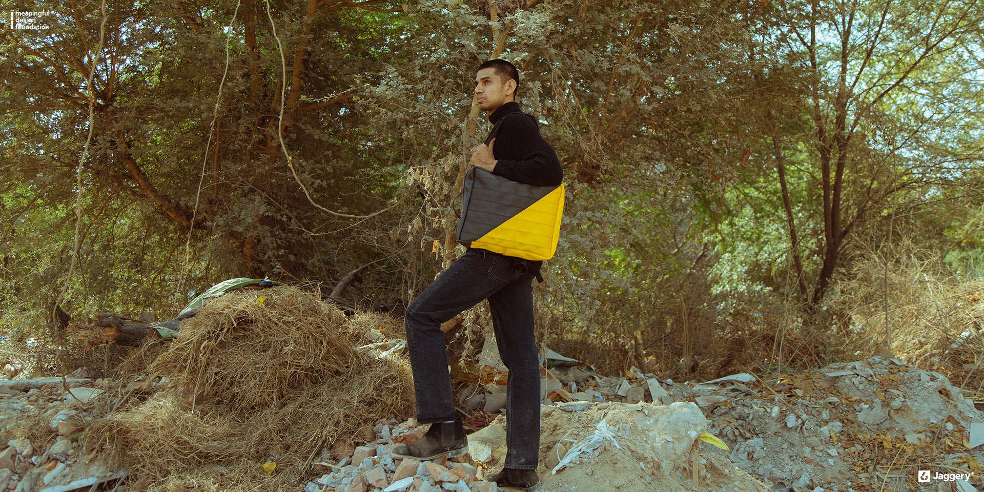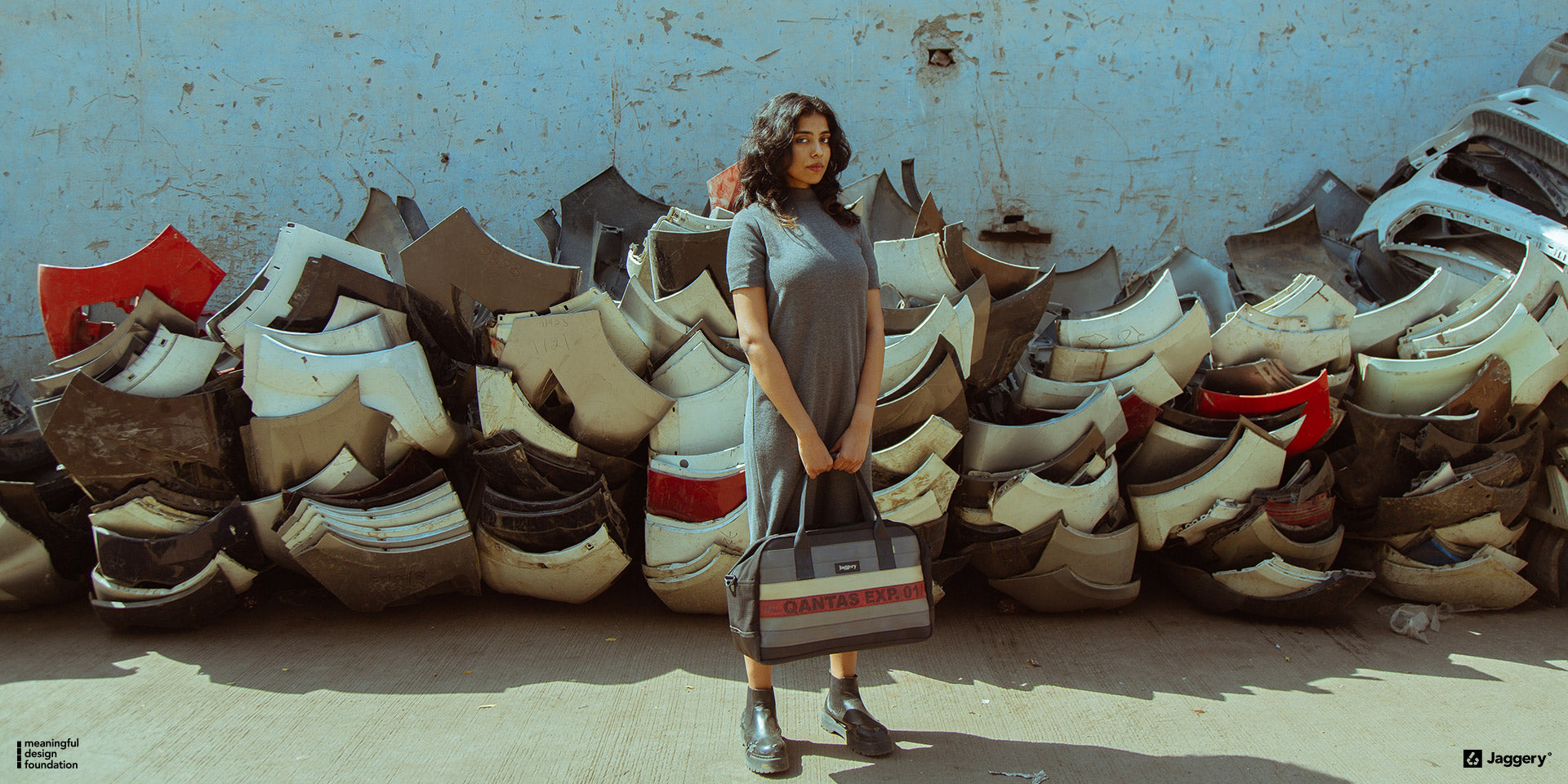 Join us in "Celebrating Urban Decay", a captivating collaboration between Jaggery and fine art photographer Shoeb Mashadi. With a bold and unconventional approach, this campaign reimagines the beauty found within urban decay. The bags from Jaggery's collection become symbolic elements against the backdrop of landfills and auto scrap yards in Delhi NCR. Through Shoeb Mashadi's lens, the juxtaposition of these resilient bags against the decaying urban landscapes creates a powerful visual narrative, highlighting the urgency for sustainable practices. This collaboration invites viewers to question their perception of beauty, to reflect on our consumer culture, and to find inspiration in repurposing and reimagining the discarded.